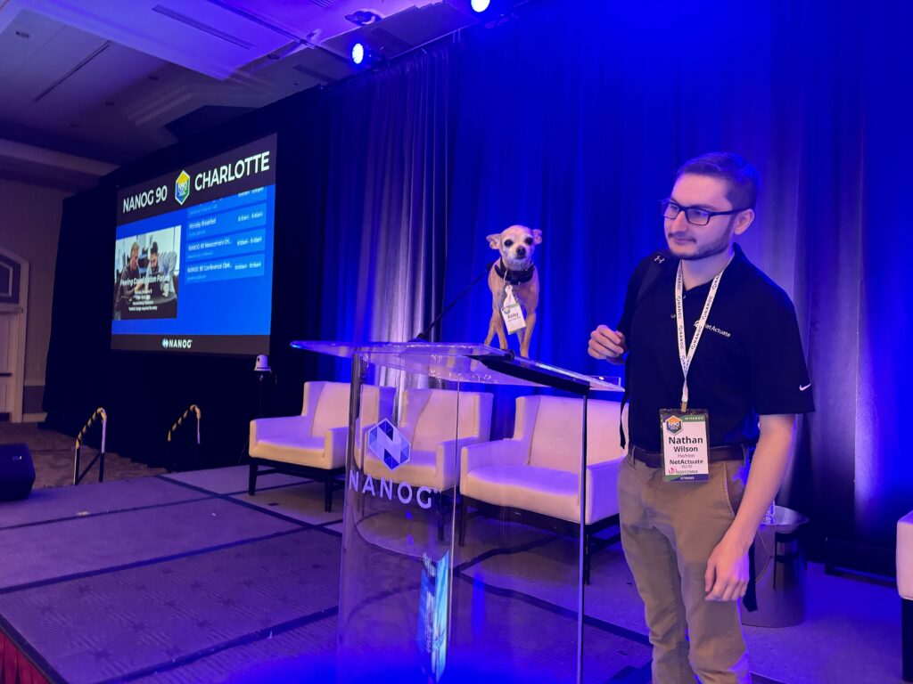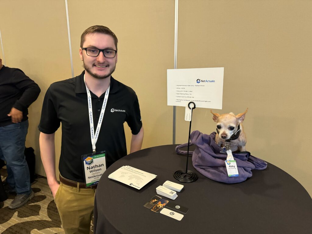 NetActuate's Kate Gerry, Abby (Datacenter Dog), and Nathan Wilson all attended NANOG 90 on the week of February 11th, 2024. This was Nathan's first NANOG, read about his experience as a first-time attendee!